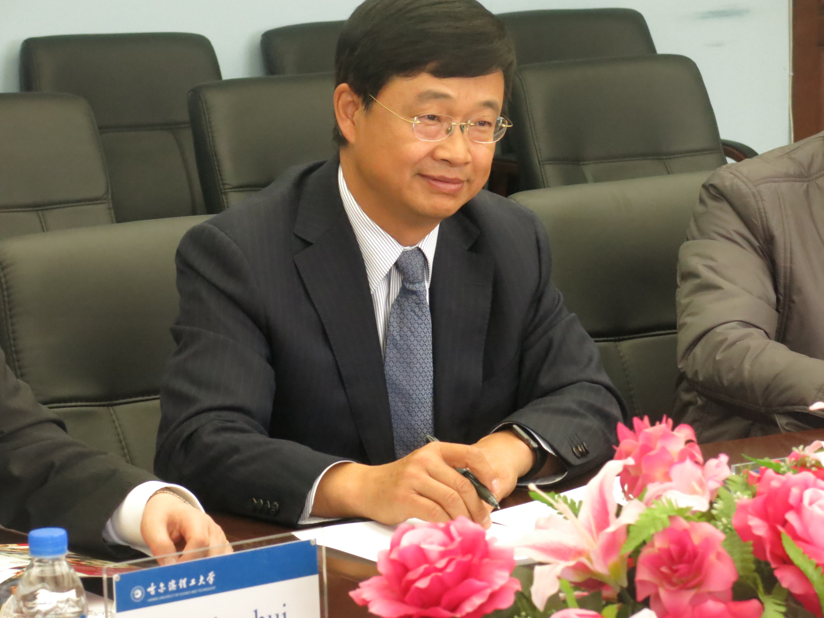 Those who accompanied the meeting are Qi Liangqun, the dean of Management School, Luo Xiaoguang, the dean of Economics School, Qin Yadong, the dean of Law School, Wang Lijing from Management School, Xi Zhaohui, Shao Yang, the director and deputy director of International Cooperation and Communication, and project supervisor Sun Jicai. (Photos by Sun Jicai)
