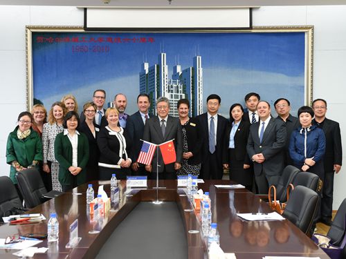 On Apr. 25, 2016, led by Carolyn Brady, director of International Cooperation Affairs of University of Wisconsin-River Falls, an educational delegation made of 13 delegates from 12 branch schools in University of Wisconsin system, visited HUST at the invitation, accompanied by Ms Zhang Chunbo, one of educational consultants of U.S. consulate-general in Shenyang, as well as Liu Hongmei (director), Wu Haoyang (deputy director), and Yin Li (civil servant) from America & Oceania Branch of Heilongjiang Provincial Foreign Affairs Office.
