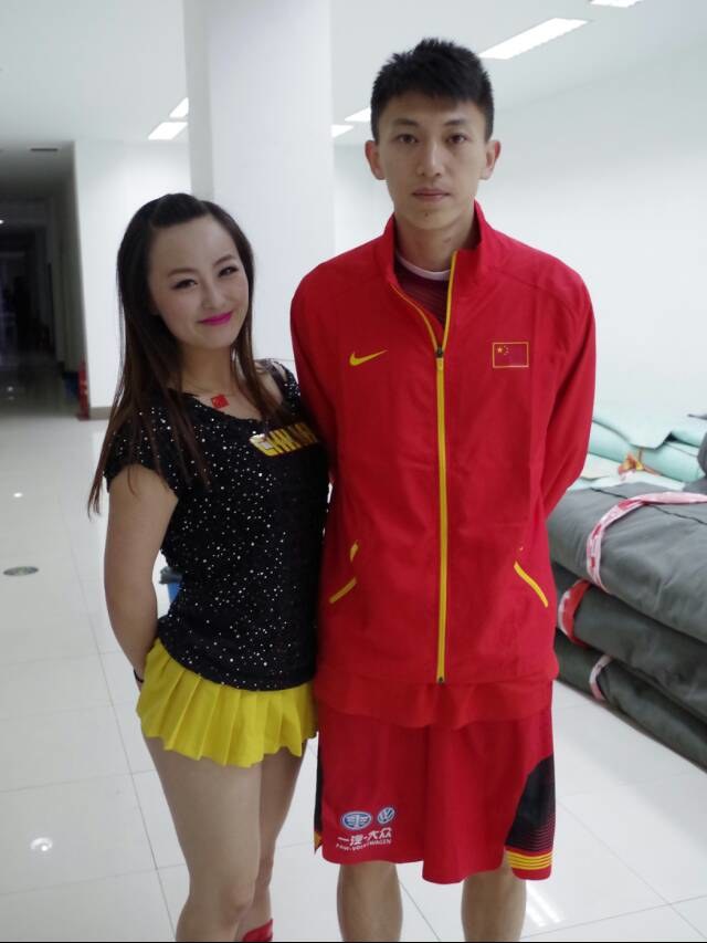 A photo of Head of Cheerleader HUST and Liu Xiaoyu, a basketball star