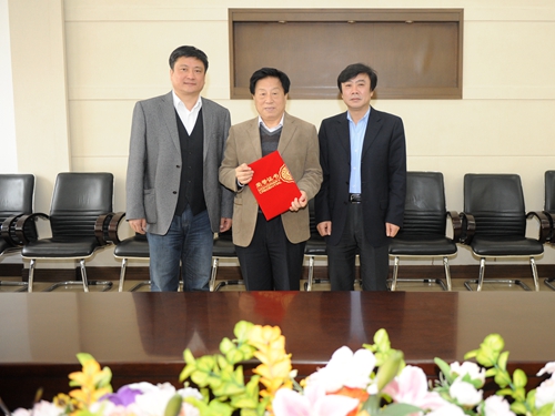 Zhao Guogang, General Secretary of HUST, granting an employment certificate to Academician Xie Lili