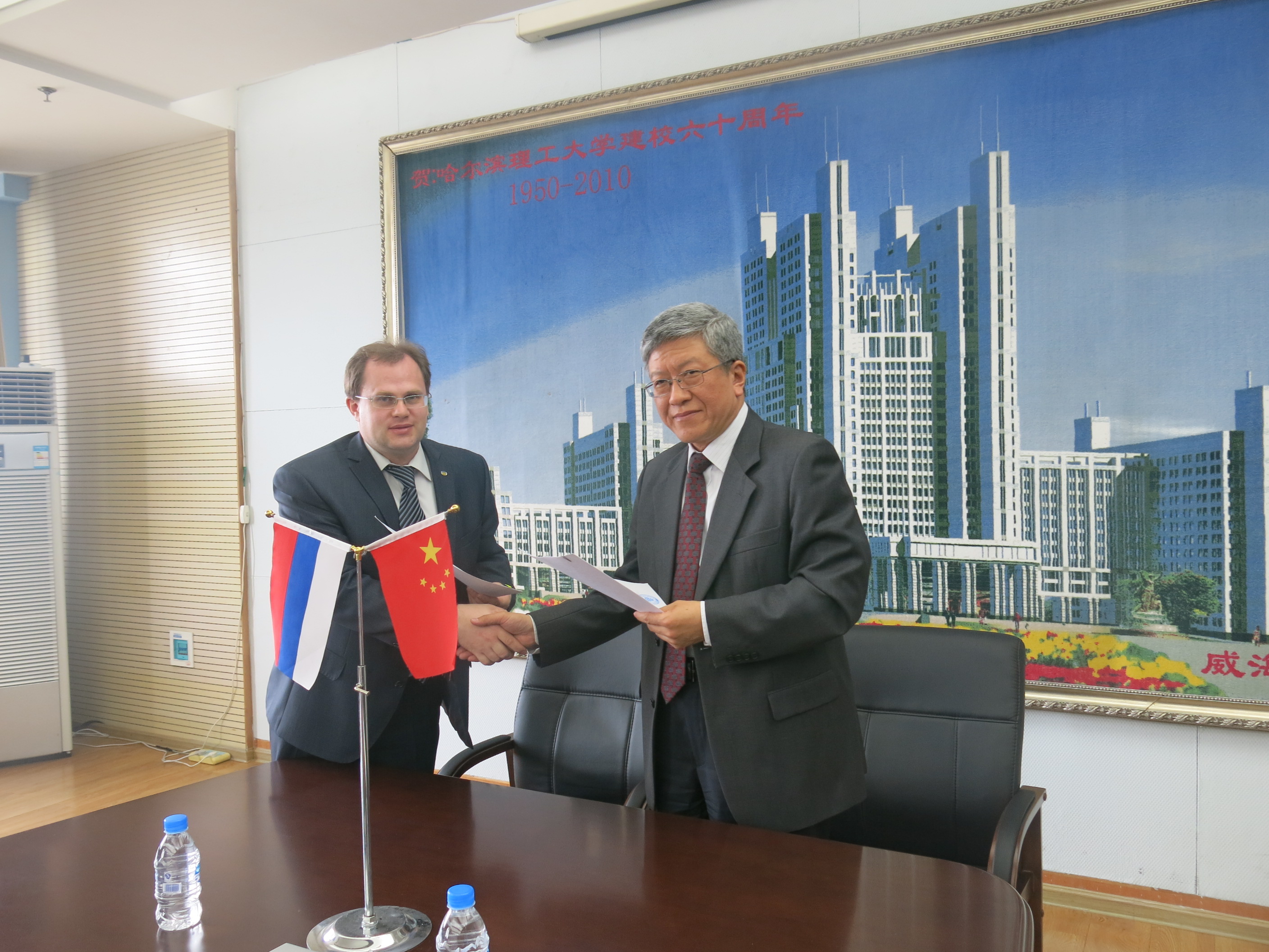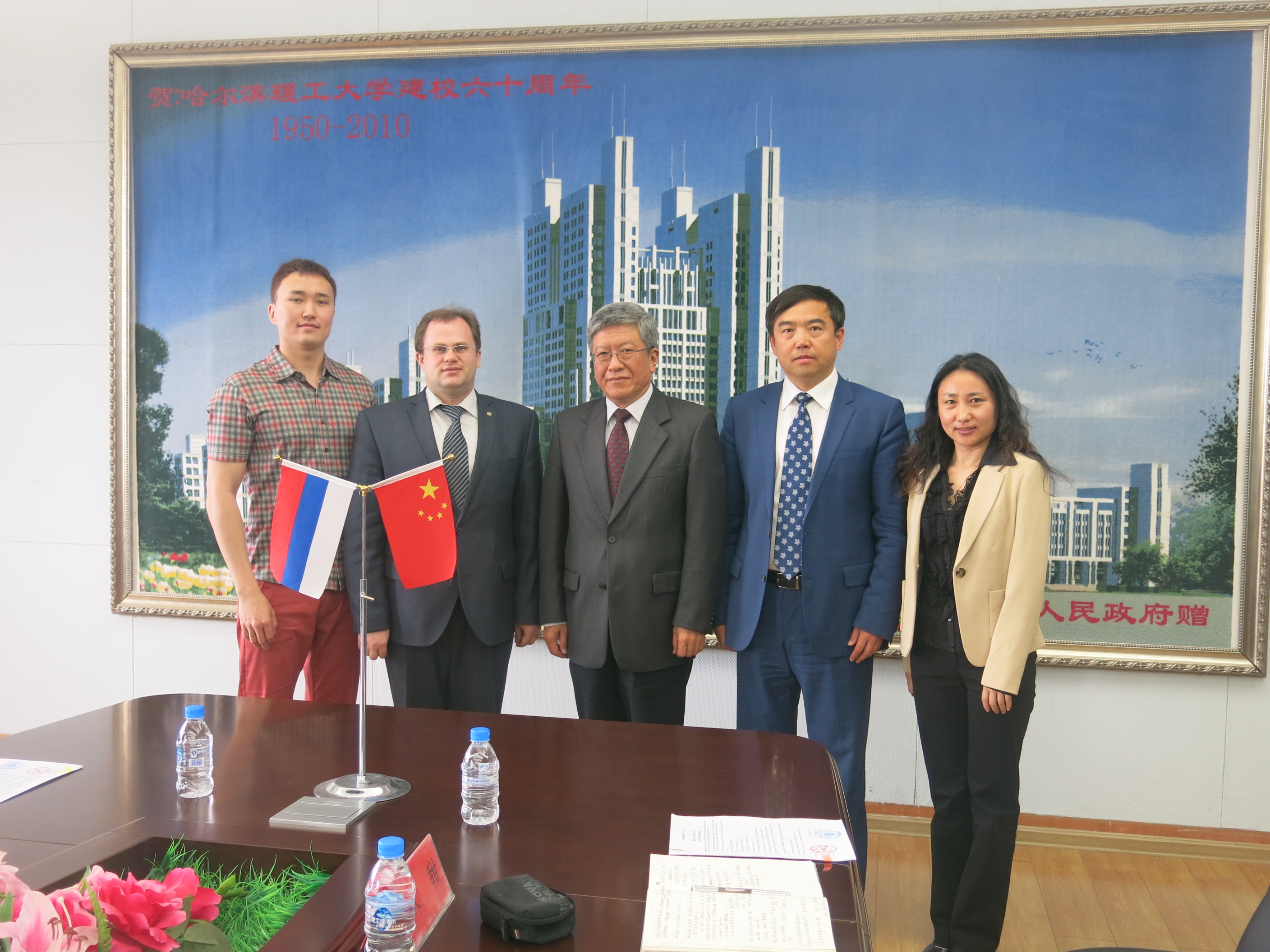 The 2-person delegation, invited by our university, from Russian North-Eastern Federal University, had a friendly visit to Harbin University of Science and Technology. They are Mr. Mikhail Yuryevich who is the vice-principal of International Cooperation and National Science in Russian North-Eastern Federal University and Mr. Romanovich Maximov who is the director of Oriental Institute. They are met by Professor Li Dayong who is the Principal of Harbin University of Science and Technology.