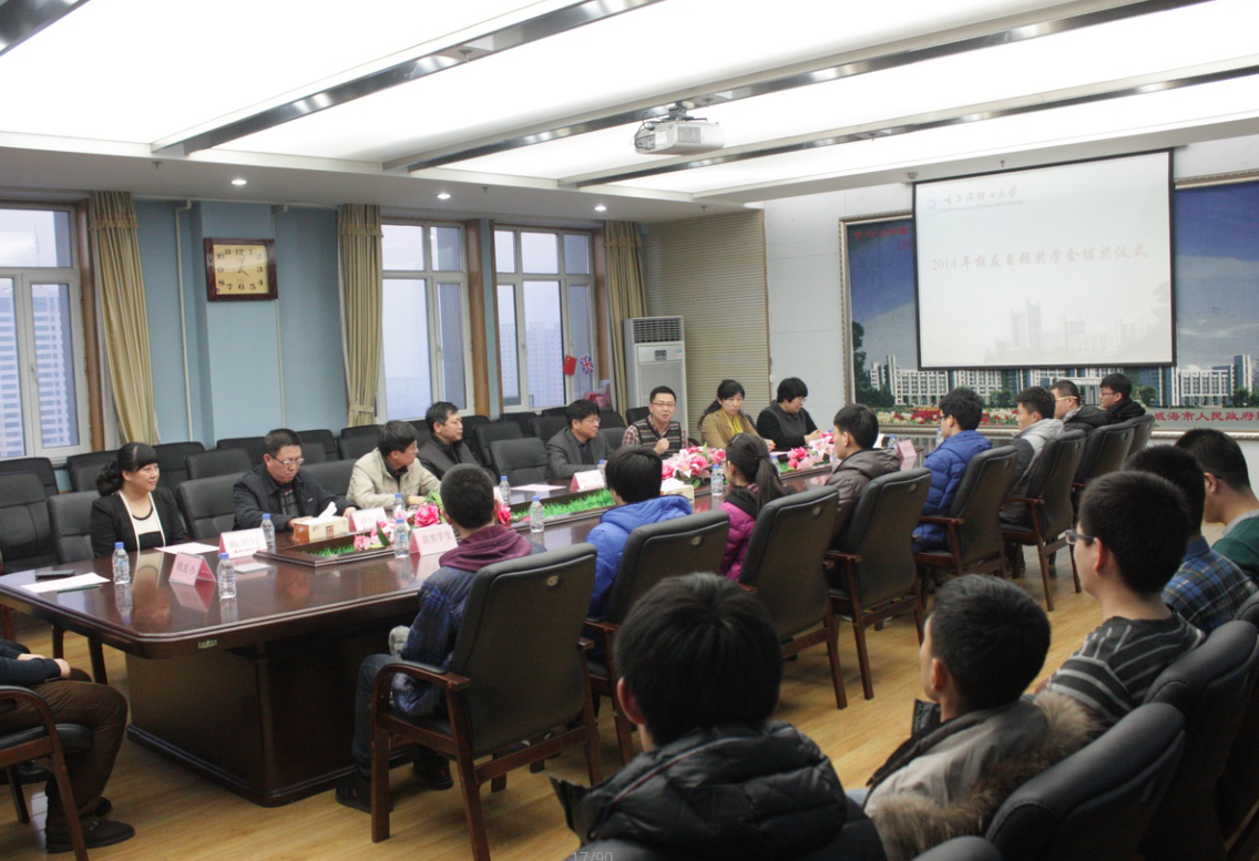 At 16:00 of January 8, 2014 Alumni Self-improvement Scholarship Award Ceremony was held in the Second Conference Room in the New Teaching Building. Those who attended the ceremony were Yang Chun, who was the Chairman of Labor Union in HUST and vice Director-General of Education Development Foundation, Ji Donghai who was the Chief Accountant of HUST and Secretary-General of Education Development Foundation, Zhang Taifu who was the Secretary of General Party Branch in Automation School, Wang Qi who was the Deputy Director of the School Office and Director of the Alumni Office, Tang Shixin who was the Deputy Secretary of the Party Committee in Mechanical and Power Engineering, Yang Fang who was the Deputy Secretary of the Party Committee in School of Electrical and Electronic Engineering, Dai Xiangzhu who was the Deputy Secretary of the Party Committee in School of Computer Science and Technology, Liu Kunyan who was the Deputy Secretary of the Party Committee in School of Measurement and Control Technology and Communication Engineering, and counselors from some schools.