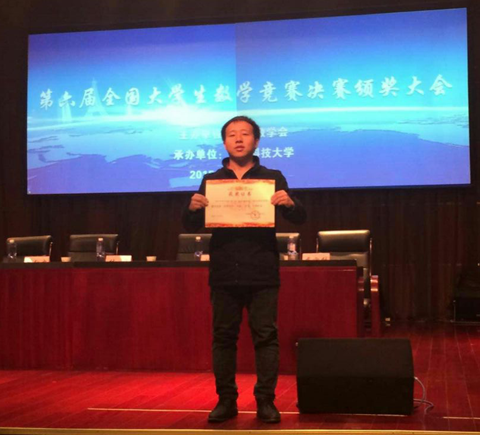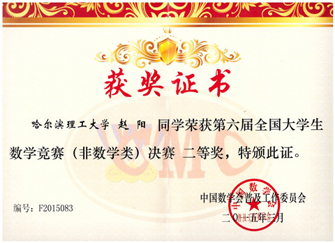 On March 22, the final of the Sixth Session of the National Undergraduate Mathematical Contest, sponsored by Chinese Mathematical Society, was successfully concluded in Wuhan Huazhong University of Science and Technology. There were 297 undergraduates reaching the final, who were from hundreds of universities, such asPekingUniversity,TsinghuaUniversity,FudanUniversity,TongjiUniversity. Mr. Zhao Yang, an undergraduate from Grade 2011, major of Measurement and Control Technology and Instrument, was ranked the 83rdamong the 179 contestants in the nonprofessional mathematical group. Besides, he won the national second prize in the competition.