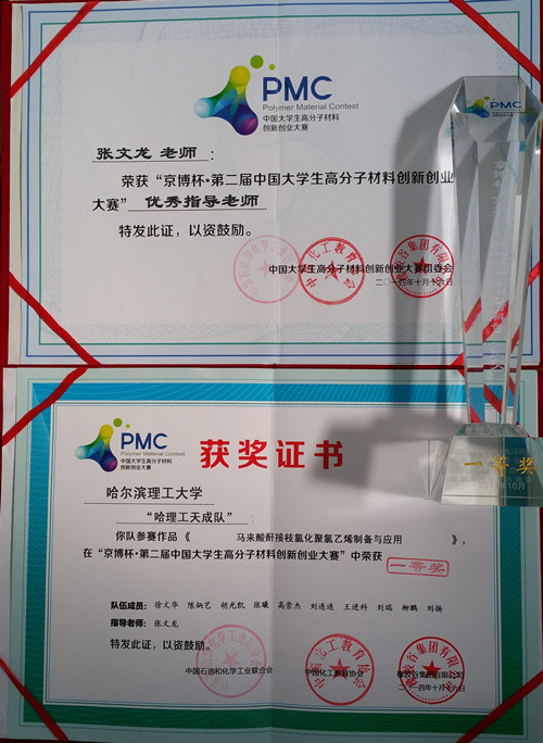 This is the first time for our university to have participated in the PMC. With the support by leaders from Teaching Affairs Office and School of Material Science and Engineering, and the careful instruction by Professor Zhang Wenlong from Department of Polymer Material and Engineering. Tiancheng Team from our University, members including Xu Wenhua, Chen Bingyi, Zhang Xi, Liu Lianlian, on the first prize through fierce competition of 3 rounds, and received high praise from experts and judges. Professor Zhang Wenlong gained the honor of “Excellent Instructor”. They won honors for our university. Such great result further demonstrates that our university constantly lays great emphasis on cultivating students’ problem-solving abilities, creativity abilities, and scientific research qualities. It is also another fruitful result gained by the Department of Polymer Materials as one of the national special majors.