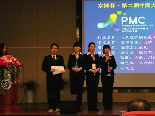 On October 16th, the 2ndJingbo Cup National Polymer Material Contest (PMC) came to a successful ending in Qingdao International Exhibition Center of 2014 China (Qingdao) Rubber Industrial Exhibition Center. This competition was co-organized by National Petroleum and Chemistry Industrial Association, National Chemical Industry Education Association, Qingdao Science and Technology Office, Rubber Valley Limited Company, and sponsored by Qingdao Rubber Valley Productive Force Promotion Center Limited Company. The 2ndPMC was themed “Innovation and Entrepreneurship—China New Chemical Materials”, which attracted 130 universities (including Zhejiang University, Sichuan University, South China University of Technology, Beijing University of Chemical Technology) from 25 provinces and Voronezhskaya University from Russia to participate in the event. There were altogether 432 entries, 71 of which won out through the first round and expert review. After the semi-final and final, 1 team won the special prize, 6 teams won the first prize, 13 teams won the second prize, 49 teams won the third prize, and 2 teams won an international prize.