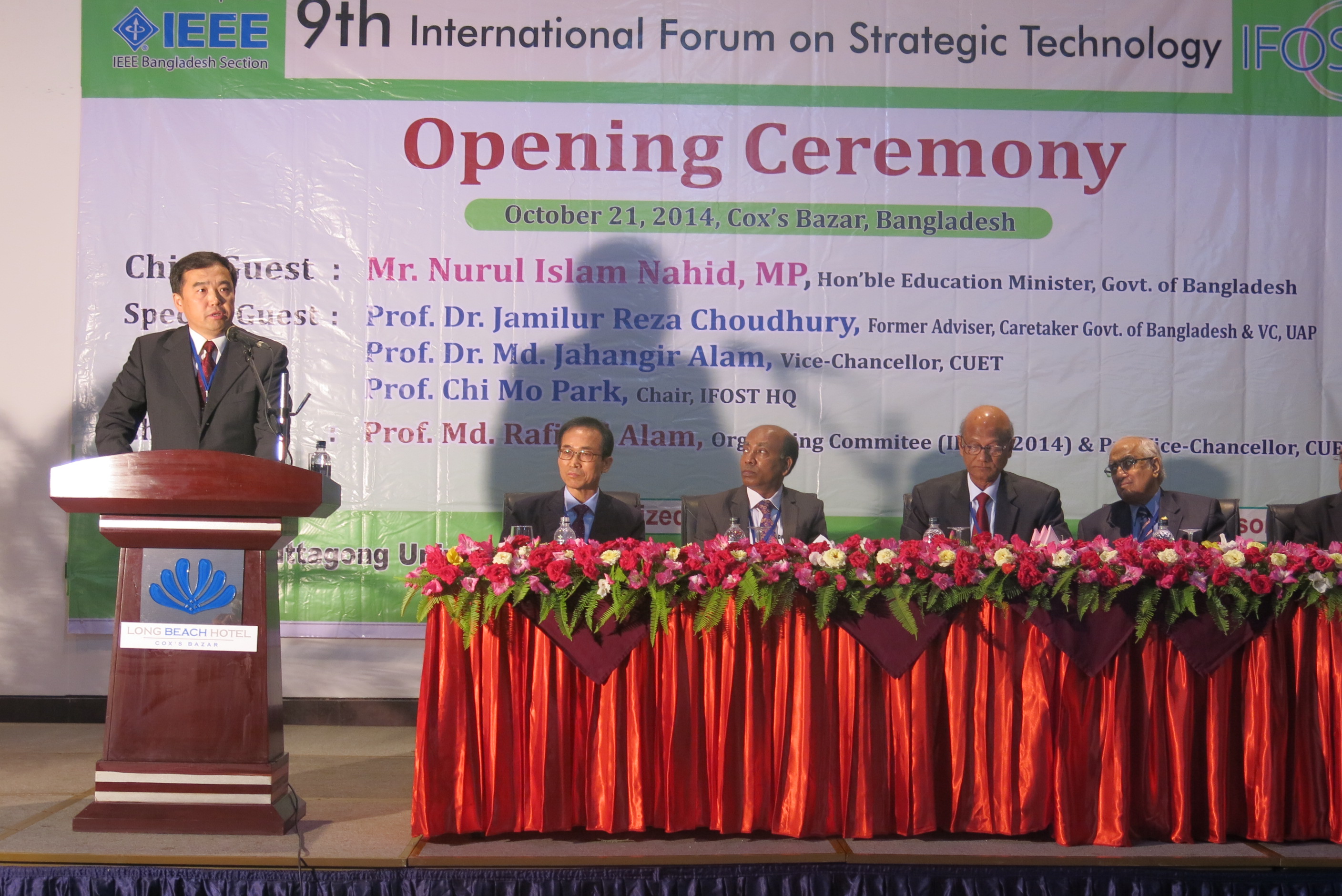 The 9thInternational Forum on Strategic Technology (the 9thIFOST) was held in Chittagong University of Engineering and Technology in the People’s Republic of Bangladesh from Oct. 20thto Oct. 24th. 21 teachers, 1 doctoral student and 4 postgraduate students participated the forum, which was supported by the university leaders and was carefully planned by the Department of International Cooperation and Exchange. 65 papers were published by the teachers and students who were from School of Electrical and Electronic Engineering, School of Measurement and Control Technology and Communication Engineering, School of Materials Science and Engineering, School of Computer Science and Technology, School of Applied Science, Software School and School of Construction Engineering. They were praised and respected by the organizer and the experts.