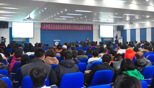 On the afternoon of December 13, the 10thterm of our school’s Knowing and Doing Forum was held in the multi-function hall in the building 1 on the West Campus. Prof. Chen Bartel, the supervisor of the doctoral candidates in NKU, gave a special speech under the title of“How Does University of Cambridge Cultivate Science Elites from the Comparison between Chinese and Western Cultures?”Lu Yan the Deputy Secretary of Party Committee, Xiao Qingsheng the Minister of theDepartment of Publicity & United Front Work for CPC Committee, and the teaching faculty and student representatives from Foreign Language Department, International Cultural Education Department, Marxism Department, Art Department, Law Department, Higher Education Research Institution participated in this seminar. Wu Qiufeng the Undersecretary oftheDepartment of Publicity & United Front Work for CPC Committee hosted the Forum.