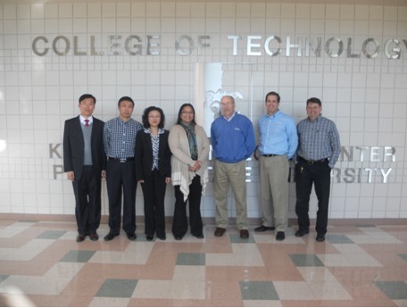 Invited by Dr. Steven A. Scott, the President of American Pittsburg State University, three-person delegation led by Sui Xiulin, the vice-president of Power and Mechanical Engineering College from Harbin University of Science and Technology visited the Pittsburg State University from Oct. 5thto Nov. 1st. Jia Dongkai who is the dean of Vehicle Engineering Department and Li Maoyue also visited the American Pittsburg State University. This visit achieved the expected aim and satisfactory result.