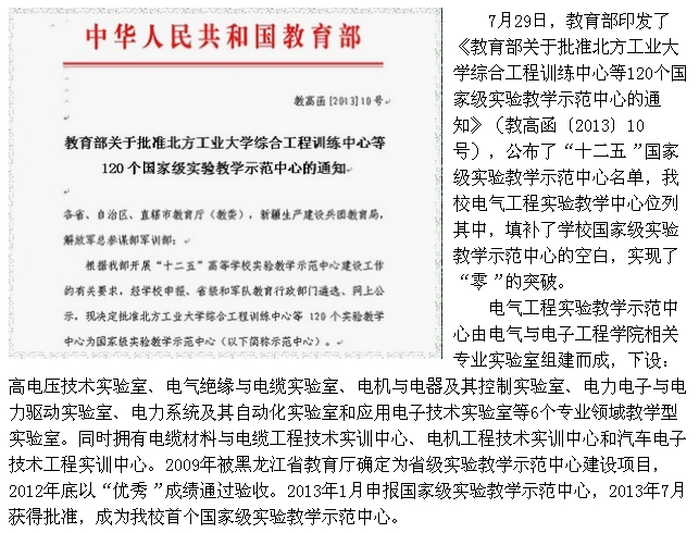 On July 29, the Eduction Ministry issued On Approving 120 National Comprehensive Engineering Practical Teaching Centers (2013, No. 10), which publicized the names of the teaching centers. The electronic engineering practical teaching center in HUST was among that list, which made a breakthrough in constructing national practical teaching center.