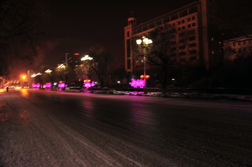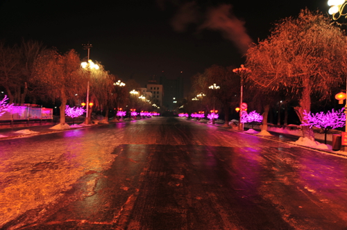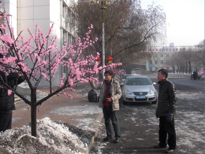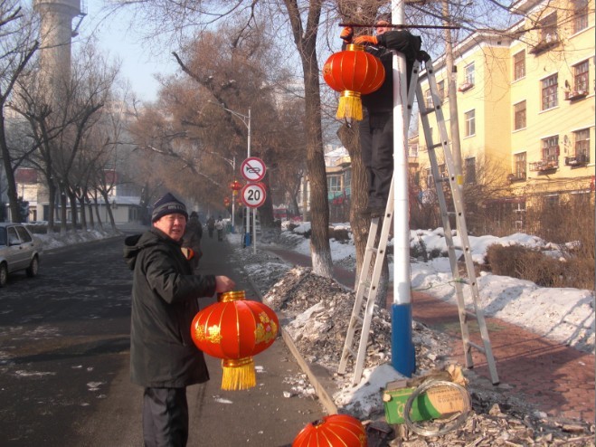 This year, the Logistics Group purchased 800 red lanterns, 52 sets of digital decorations, 30 artificial flowers and trees and 300 sets of illuminations. Under the harsh weather of -20℃, the working staff of Management Center of Logistics Group worked for over 10 consecutive days to decorate the New Teaching Building, square, two sides of the lanes on campus and all the corners in the residential zone. At night, the campus was lightened by the decorations and it seemed that the spring was coming.