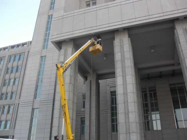 The winter was especially cold this year, but the chill never weakened the enthusiasm of the Logistics Group to serve the students and teaching staff of the university. As the Chinese New Year was approaching, the leaders of the Logistics Group started to assign the decoration task to the individual and gave the specific instruction. It was pretty hard to hang the red lanterns on the high wall of the front hall of the New Teaching Building, so the General Manager of the Logistics Group Zhao Lingguo and Vice General Manager Wang Zhibing directed the work in person and employed the upper arm car to hang the lanterns. Cold as it was, through 4 hours’ arduous work, 4 big red lanterns were hung and fastened properly.