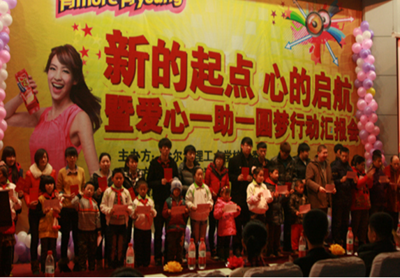 At the beginning of the debriefing,Shan Lina, Secretary of Committee of Communist Youth League of HUST, welcomed the 67 students who had received the subsidies, commended the whole year’s work of Young Volunteers Association of HUST and expressed her respect to all the students who had participated in the volunteer service. Then Zheng Xiaowei, Principal of Pingfang Primary School and Fang Donghai, Director of Helping Disabled Center of Harbin thanked the young volunteers’work of HUST and appealed more people to care about the children of migrant workers and the vulnerable groups.