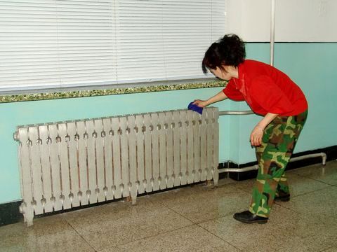A staff of the Logistics Group is cleaning the dormitory.
