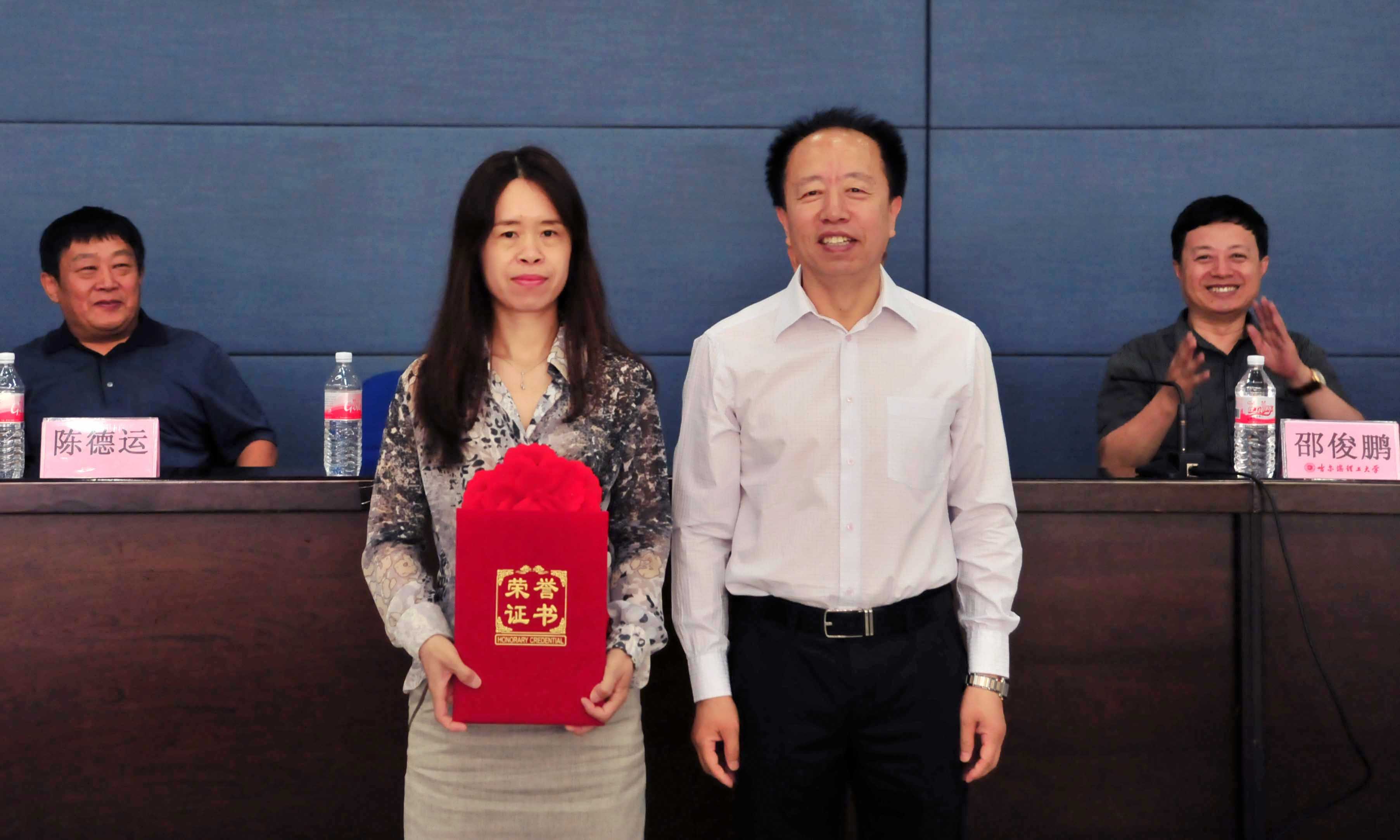 Vice-president Meng Dawei awarding Outstanding Contribution Prize to instructor Chen Dongyan