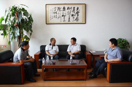 On June 20th, accompanied by Director of Retired Staff Department Yang Shibin, General Manager of Rear-service Group Zhao Lingguo, and Director of Alumni Office Chen Hongbin, President of HUST and HUST Alumni Association Li Dayong and Vice-President Wu Junfeng respectively met Deputy Secretary of Qingdao Alumni Association Chen Aimin who graduated from the School of HUST and now is Chairman of Dingdao Henghua Engineering of Electronic Equipment Plant Limited Company.